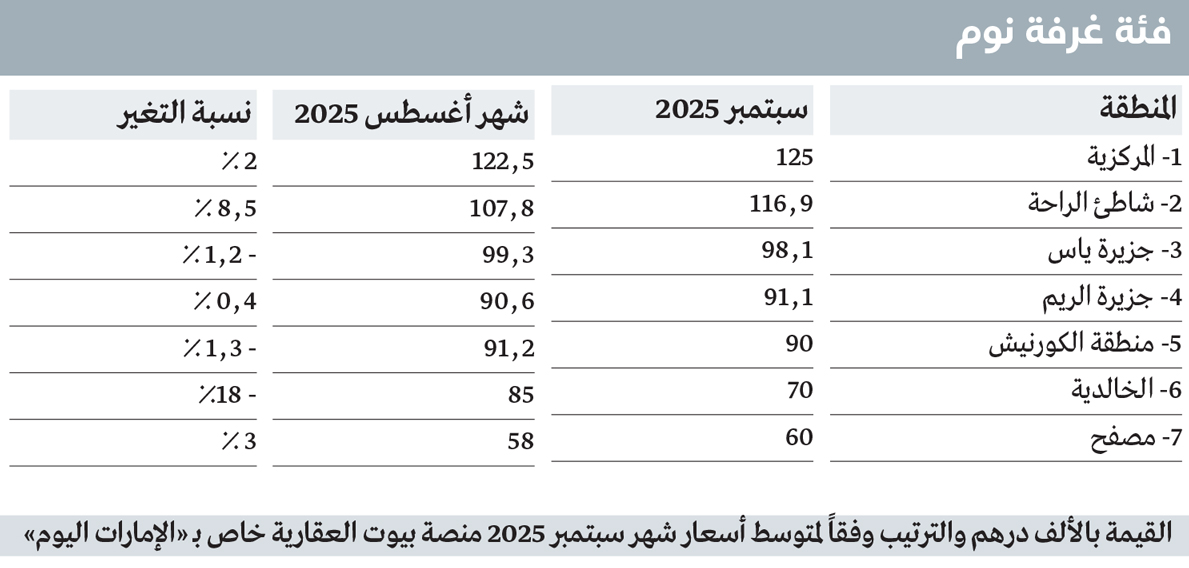 She added that the recent data for the month of August and September 2025 reflects clear directions in the movement of tenants towards areas that combine accepted prices and appropriate quality, such as Mossafah and Al -Khalidiya, as “we witnessed a great demand for small units that fit with a wide segment of residents.”