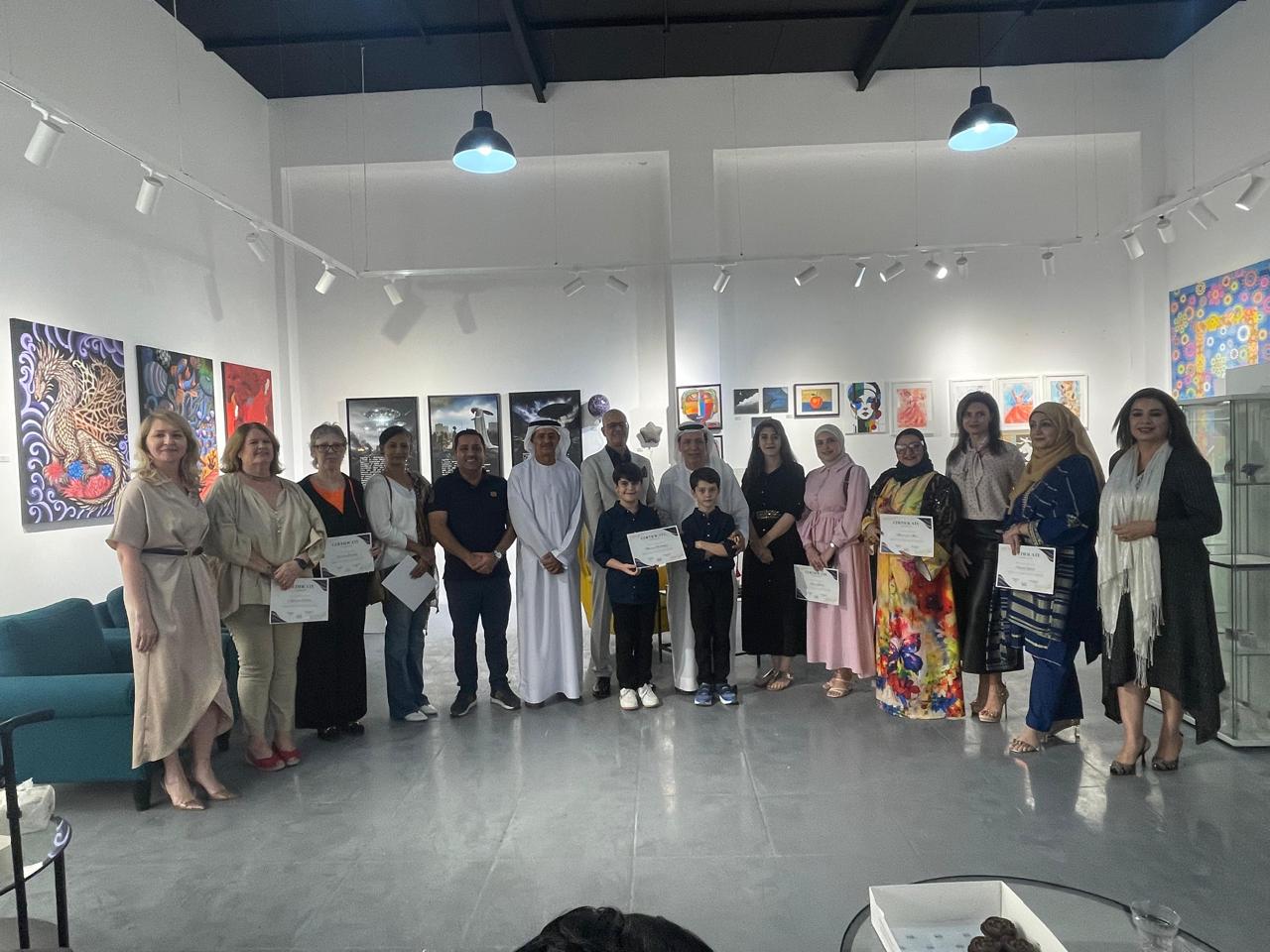 The exhibition included 34 diverse works of art executed by 15 artists and sculptors representing 13 countries: the Emirates, Syria, Morocco, Britain, Russia, India, Palestine, Pakistan, Germany, the Philippines, Chad, America and Japan.