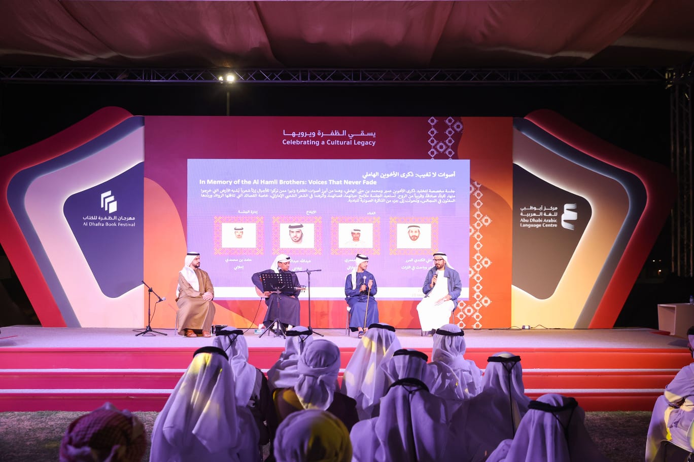 ABU DHABI, 22nd JANUARY / WAM / Al Dhafra Book Festival, organized by the Abu Dhabi Center for the Arabic Language, from January 19 to 25, organized a poetry session on the main stage in Madinat Zayed Public Park entitled “Voices Not Missed: The Memory of the Al Hameli Brothers”, in commemoration of their memory as they are among the most prominent poetic voices in the Al Dhafra region, and among the poets who left for generations an ancient poetic legacy close to the soul.